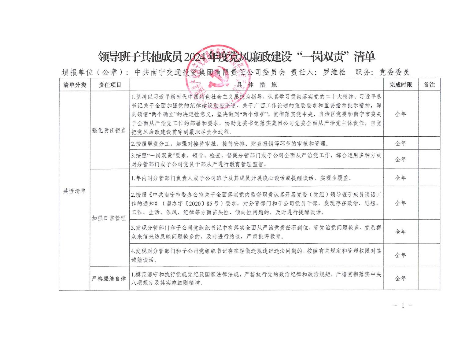領(lǐng)導(dǎo)班子其他成員2024年度黨風(fēng)廉政建設(shè)“一崗雙責(zé)”清單(五)