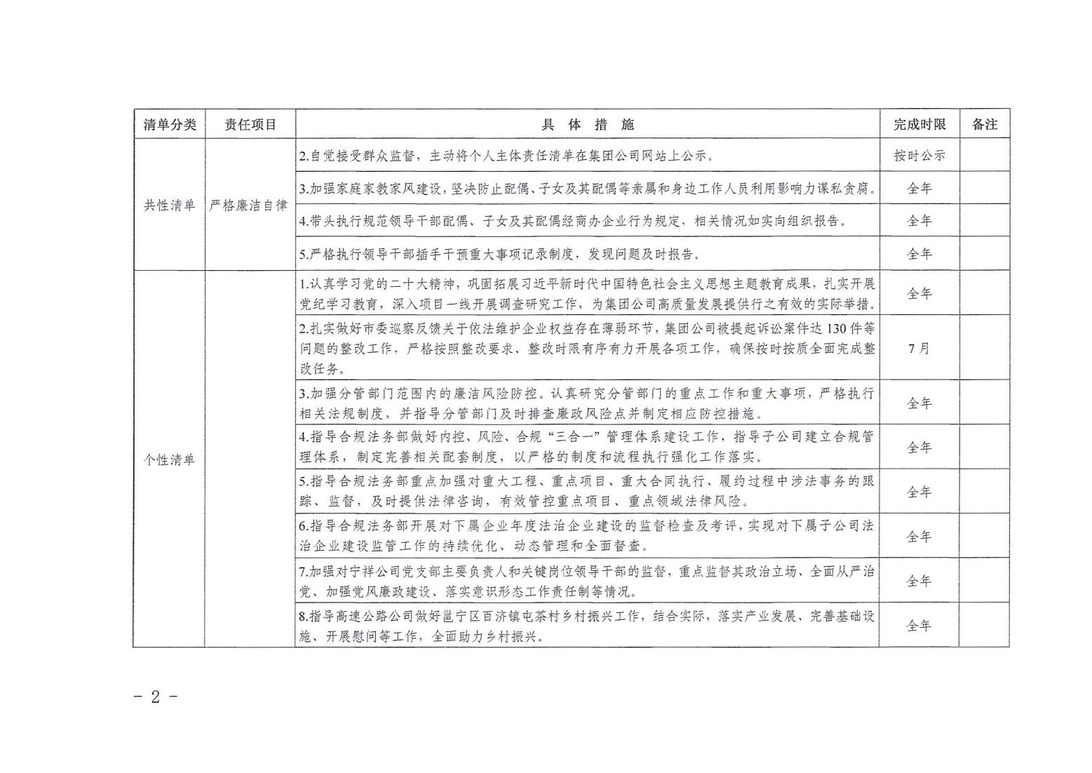 領(lǐng)導(dǎo)班子其他成員2024年度黨風(fēng)廉政建設(shè)“一崗雙責(zé)”清單(三)